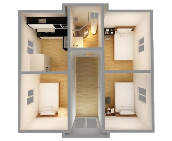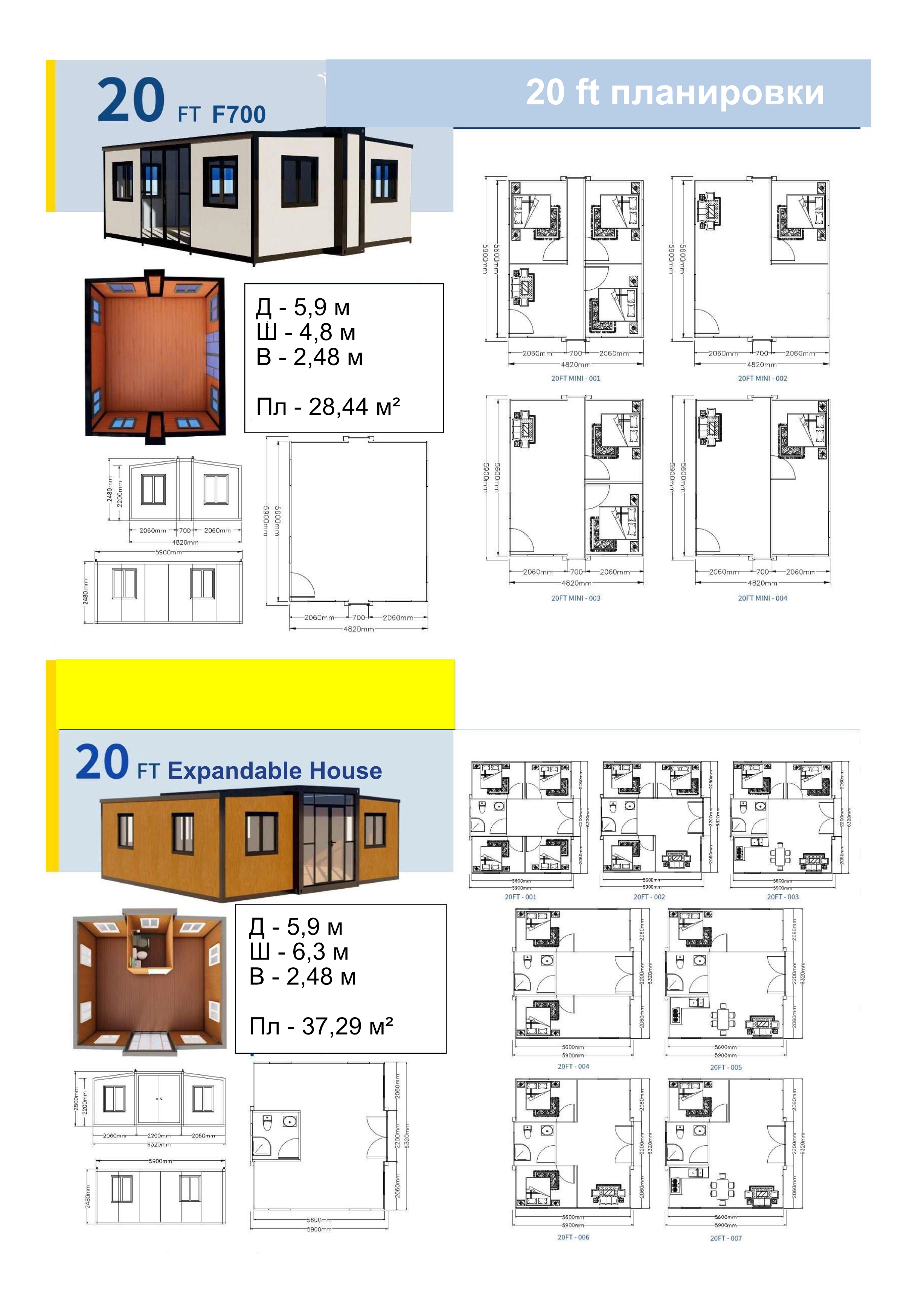 The F700 stands out separately - the most compact module from the Expandable House line. The width of its central part (folded) is only 700 mm, and the total unfolded width is 4820 mm.